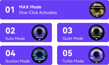 4 modes to address diverse cleaning needs, while one-click activates Max Mode for added power, streamlining any and all cleaning tasks.